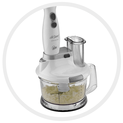 Çift taraflı paslanmaz bıçakları sayesinde et, sebze, soğan, meyve, fındık gibi besinleri kolayca parçalayabilir ve kıyabilirsiniz.