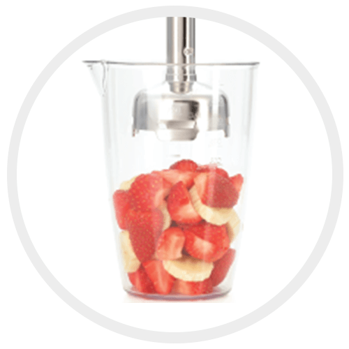 Sebze ve meyveleri kolayca ezip püre ve ayran yapmaya uygun 900 ml kapasiteli özel bir ölçü kabına sahiptir.