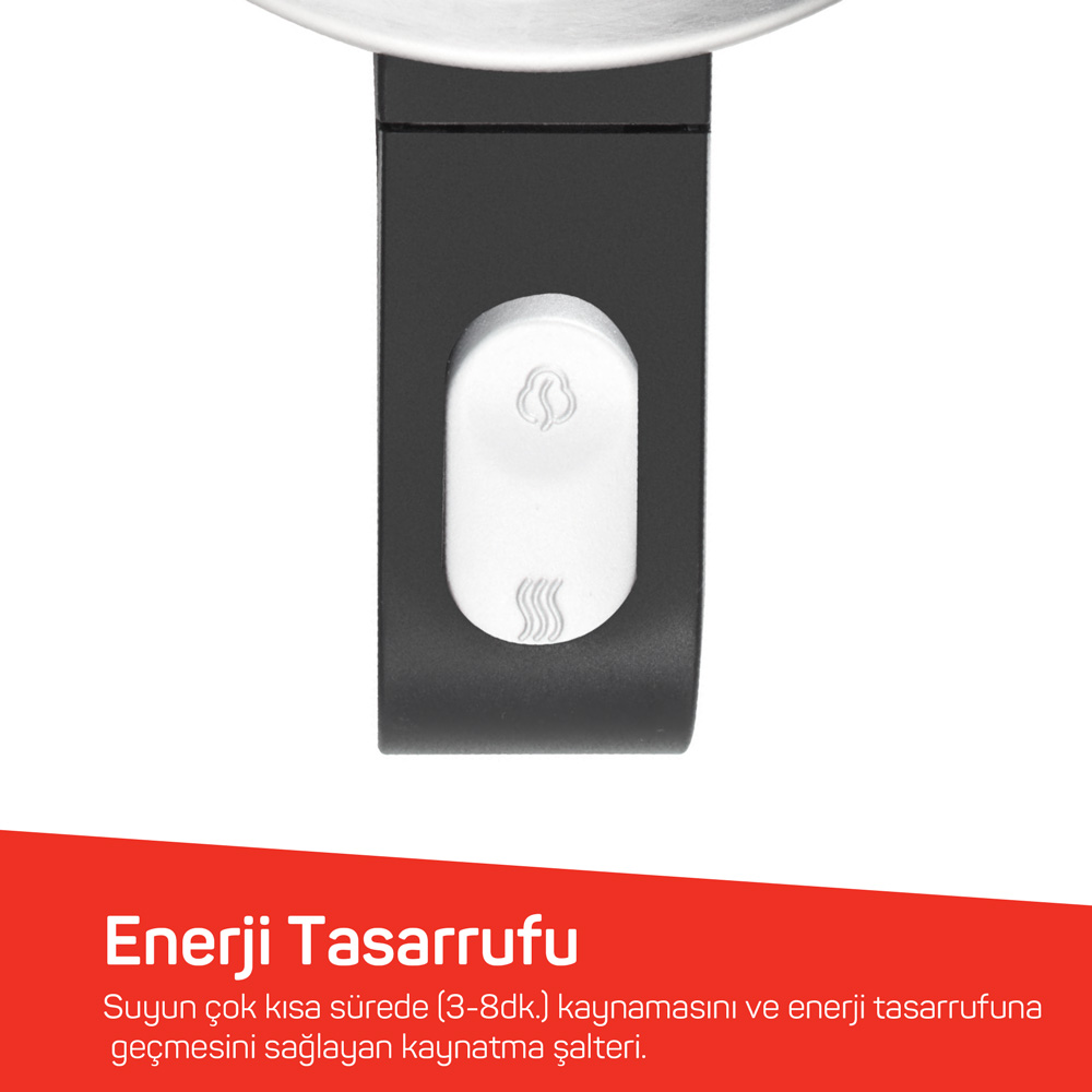 Suyun çok kısa bir sürede kaynamasını ve %90'a varan enerji tasarrufuna geçmesini sağlayan kaynatma sistemine sahiptir.