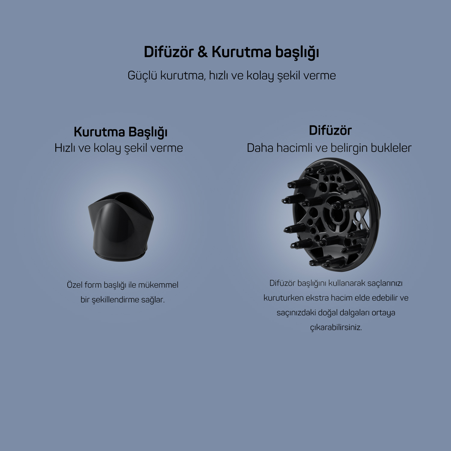 With the diffuser head, you can get extra volume while drying your hair and reveal the natural curls in your hair.