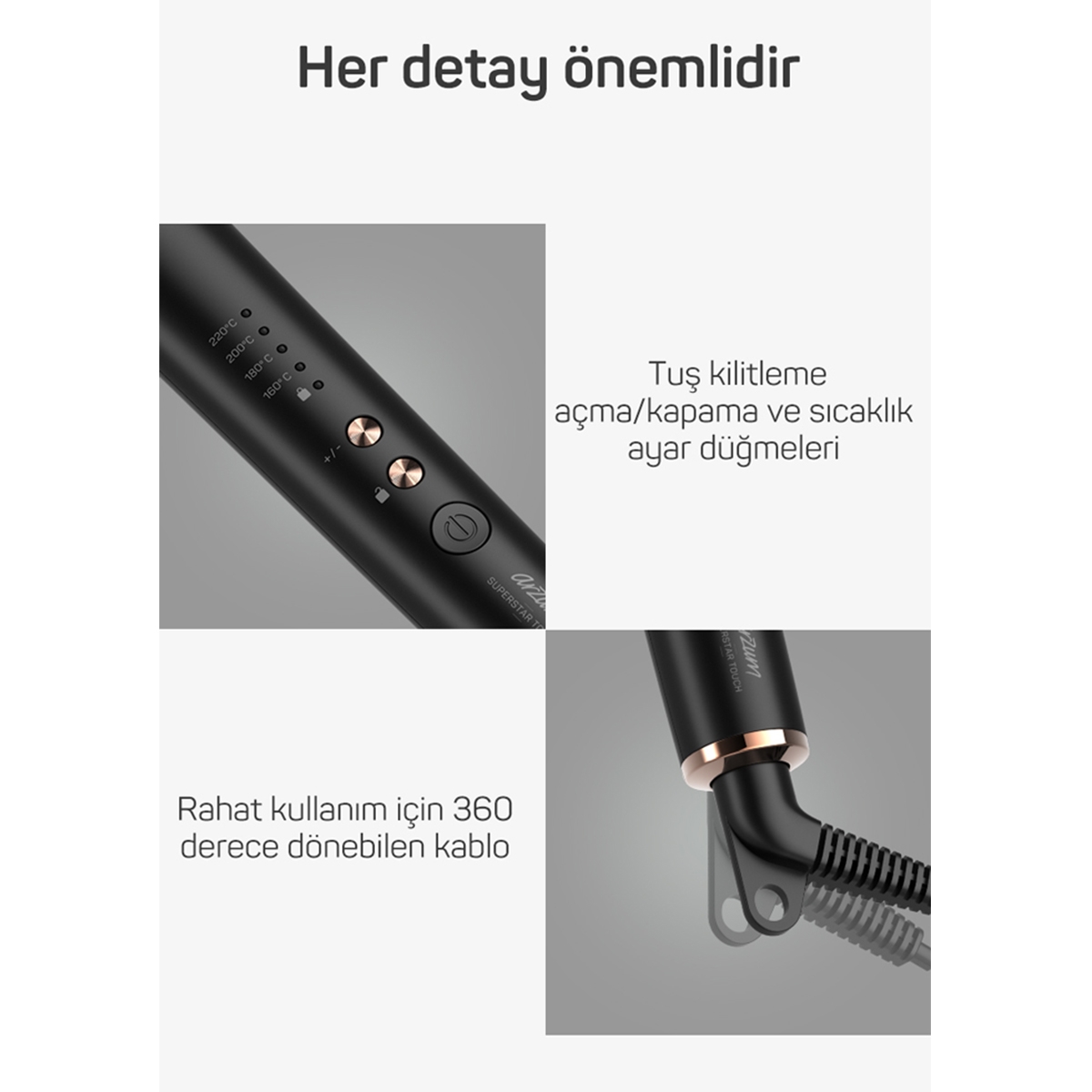 Arzum Superstar Touch offers practical and easy use thanks to its fast heating and heat protection.