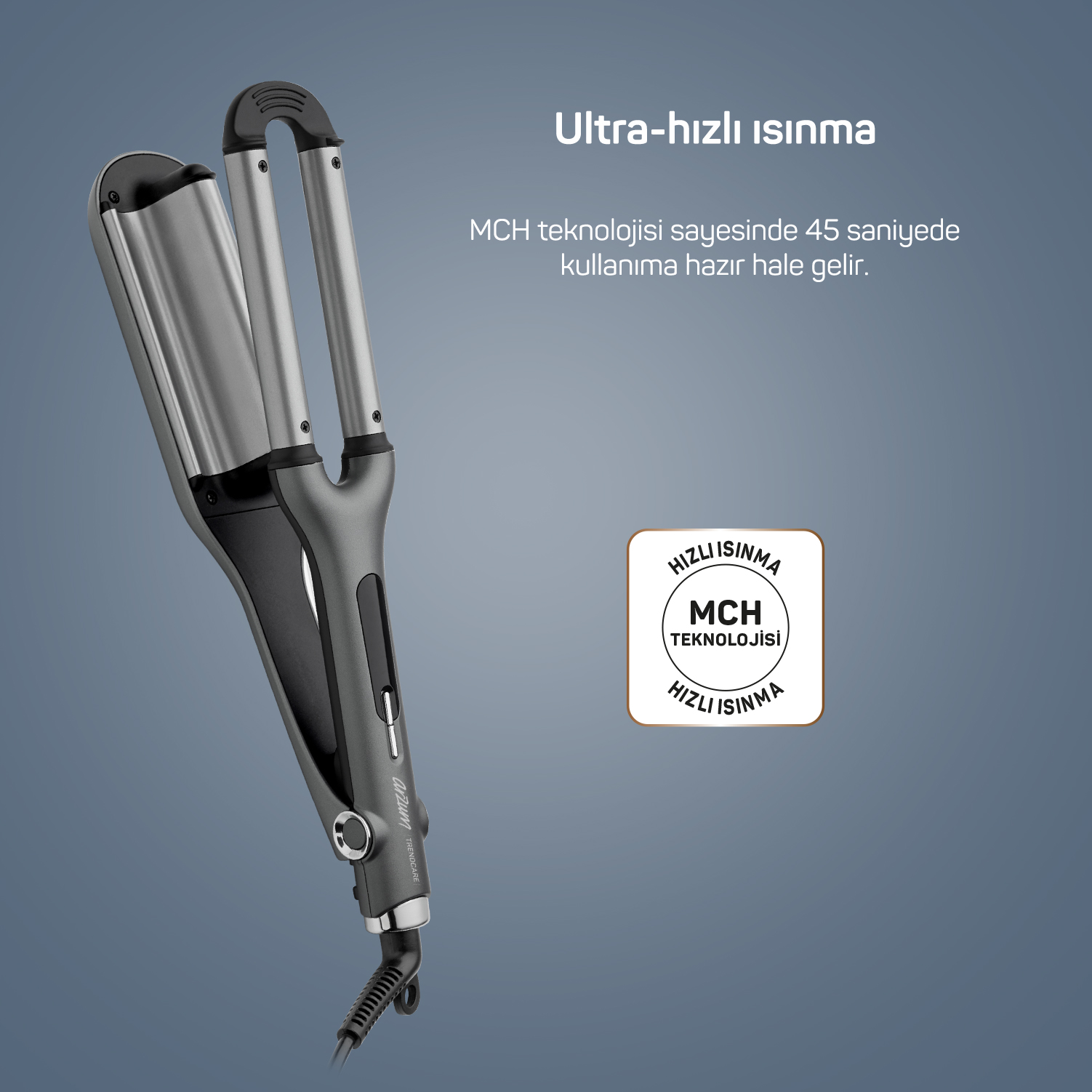 16 mm maşa çapı ile geniş, belirgin ve doğal görünümlü bukleler yaratır.