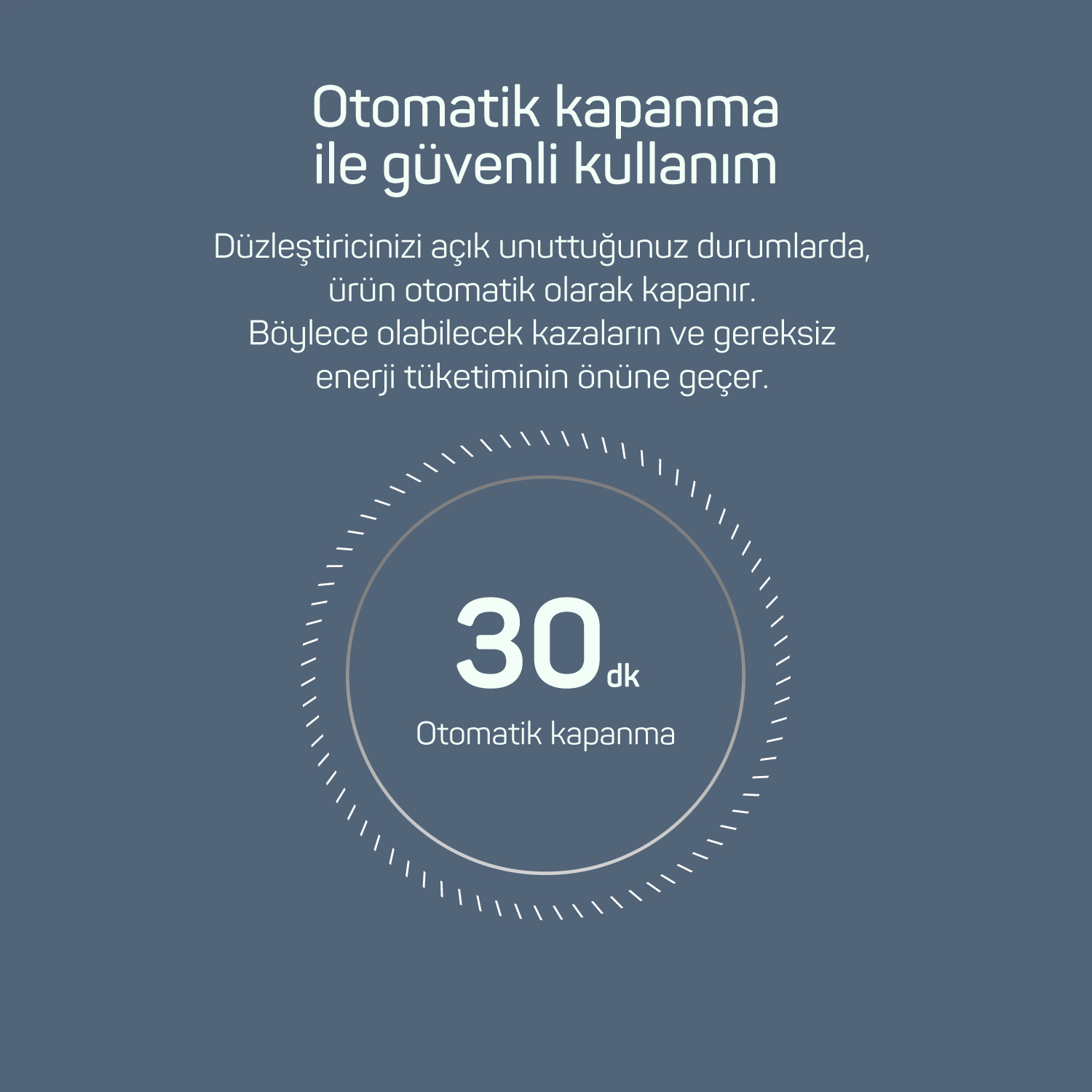 Trendcare wag maşası, otomatik kapanma özelliğine sahiptir. Cihazı açık unuttuğunuz durumlarda cihaz, 30 dakika sonra otomatik olarak kapanır. Böylece olabilecek kazaların ve gereksiz enerji tüketiminin önüne geçer.