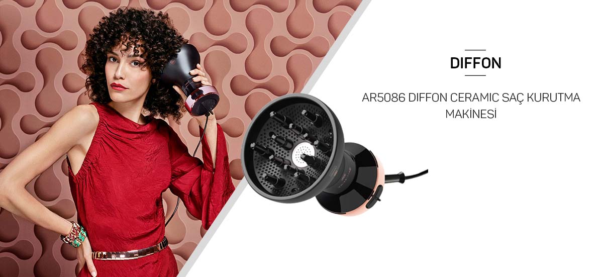 Difüzör ve saç kurutma makinesini birleştiren eşsiz bir tasarıma sahiptir. Kıvırcık saçlara özel kurutma ve şekillendirme sunar.