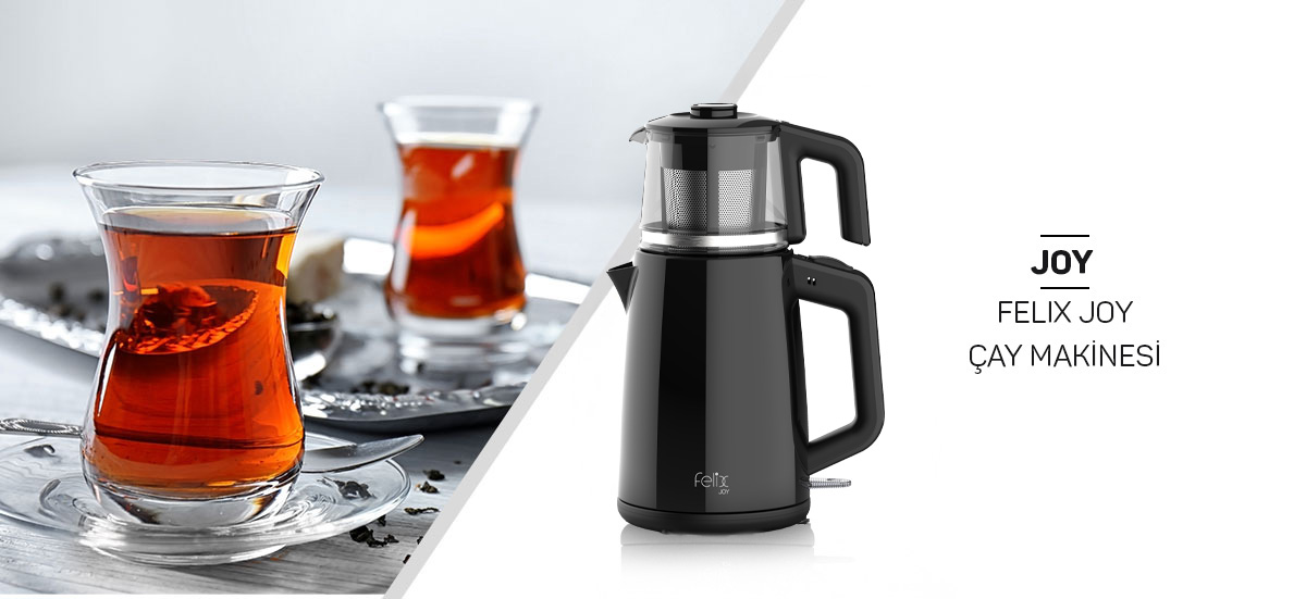 Felix Joy, 2 L kapasiteli su haznesi ve 1 L kapasiteli cam demliği ile tek seferde daha fazla çay hazırlama imkanı sunar.