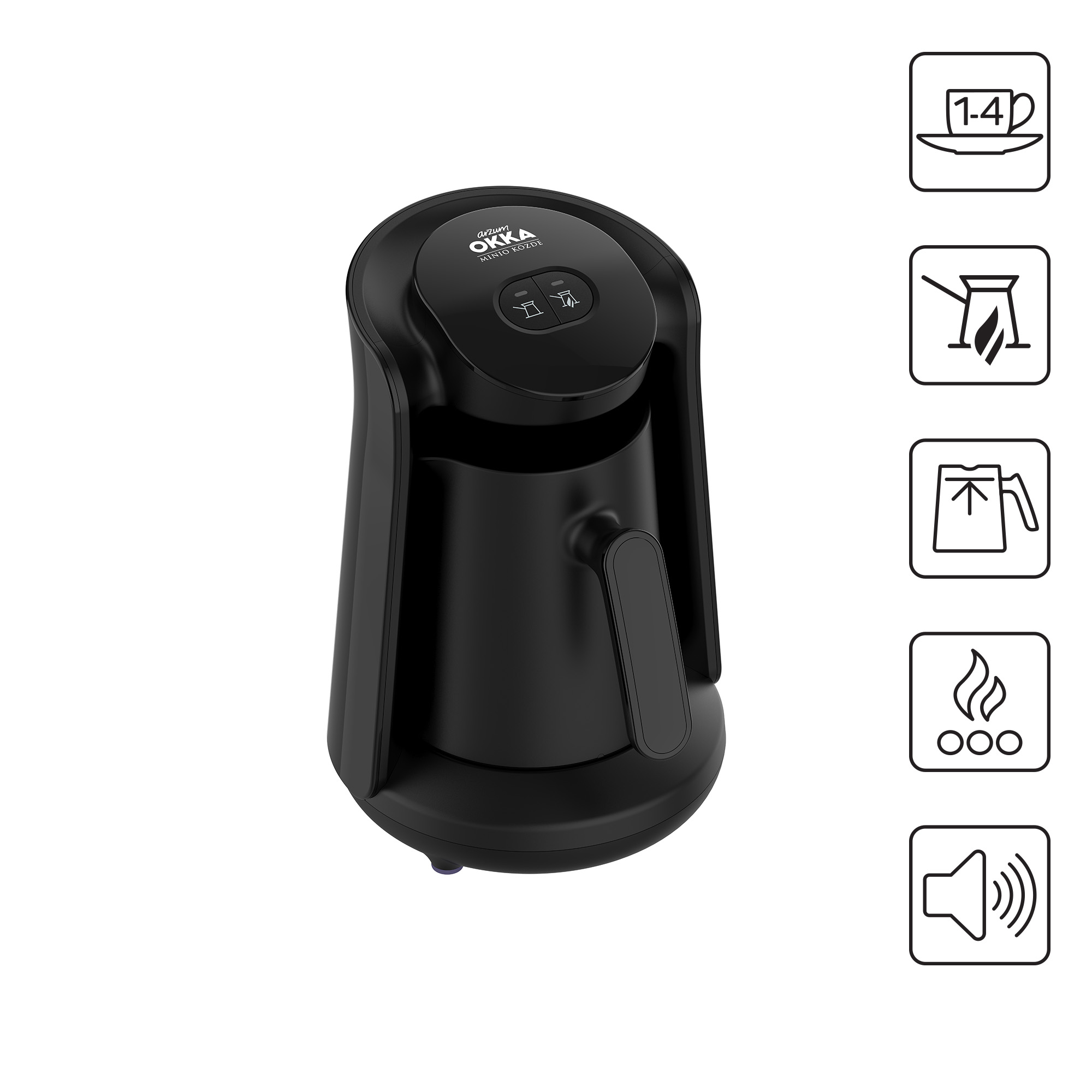 Prepare up to four cups of ember-fired Turkish coffee at once, perfect consistency and plenty of foam, with the Arzum OKKA Minio. Its overflow prevention system and award-winning design make it ideal for a delightful coffee experience.