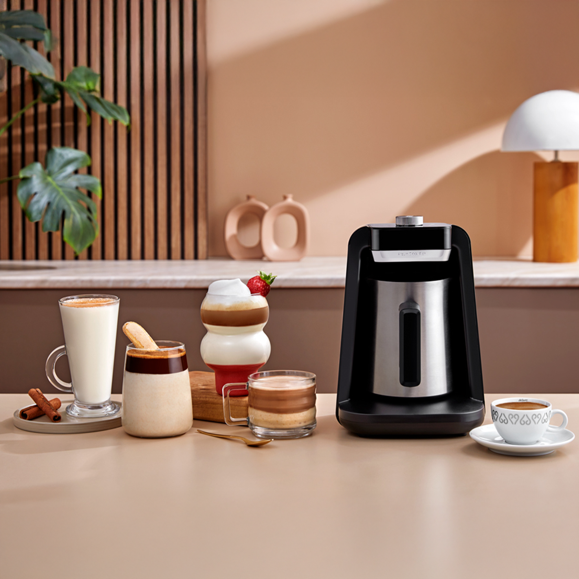 Prepare up to 5 cups of traditional Turkish coffee, roasted coffee, Turkish coffee with milk, hot chocolate, milk drinks, and more at the perfect consistency in one go with the OKKA Rich Spin Pro, Türkiye's first Turkish coffee machine with a mixer and coffee pot. Become your kitchen's barista with its 8 different modes, automatic brewing temperature adjustment, and easy-to-clean stainless steel coffee pot.