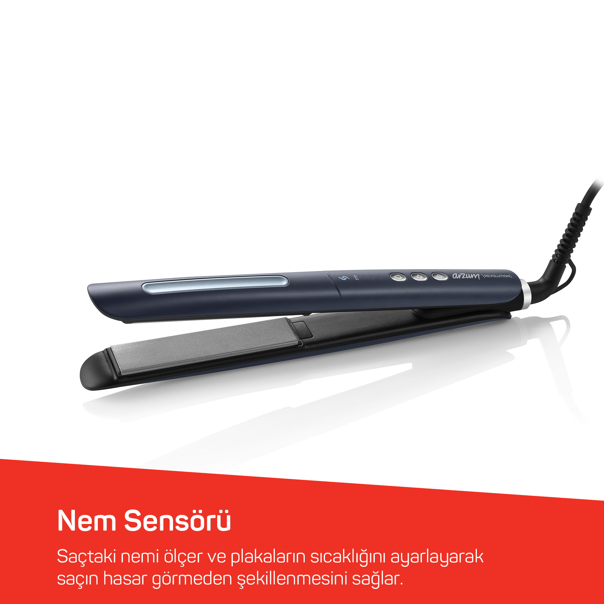 Nem sensörü sayesinde saçtaki nemi ölçer ve plakaların sıcaklığını ayarlayarak saçın hasar görmeden şekillenmesini sağlar.