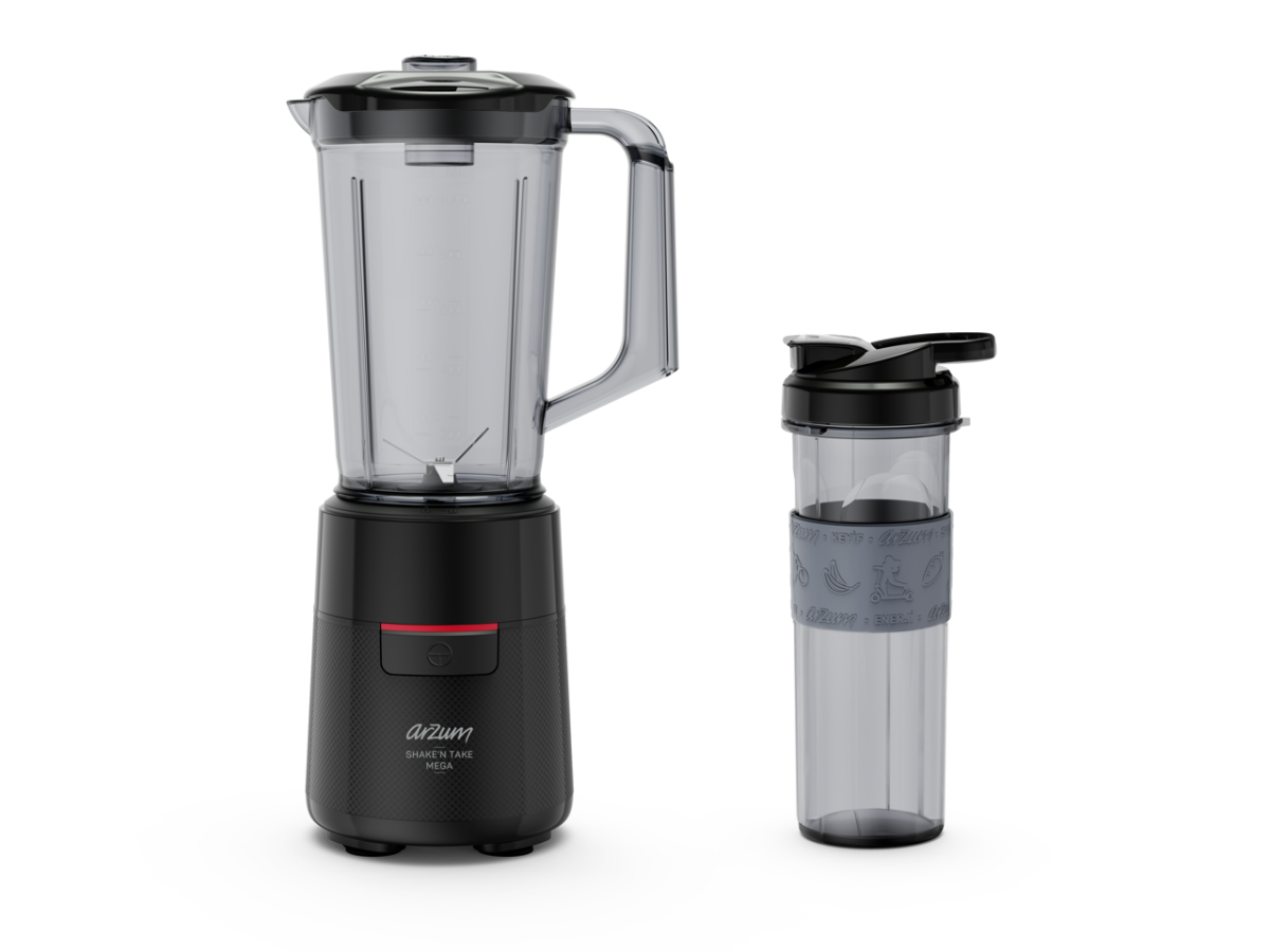 Arzum AR1196 Shake'N Take Megamix Sürahi Blender 550W, 1L Sürahi, 550 ml Taşınabilir Şişe, Siyah
