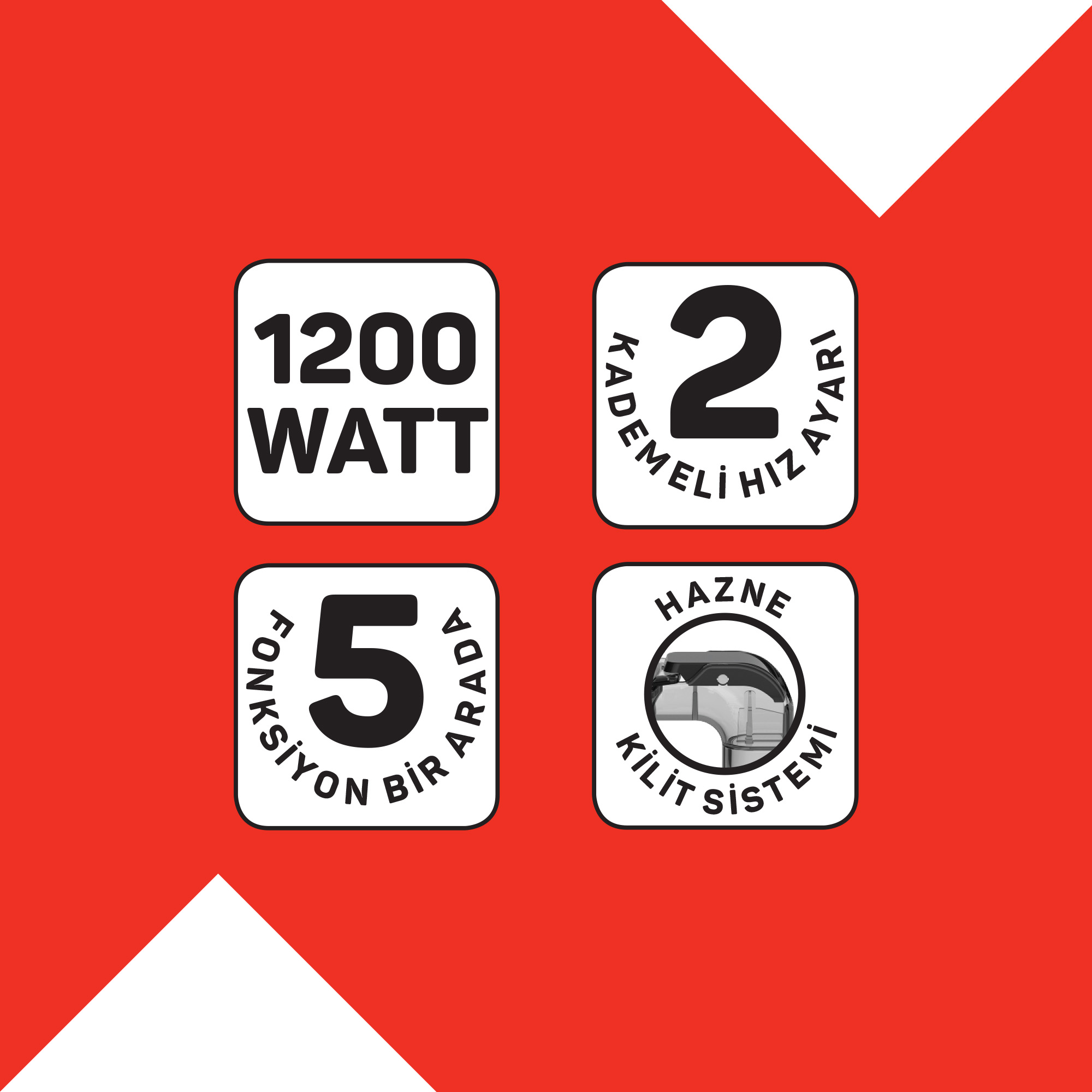 1200 W güçlü motoru sayesinde kolayca doğrama, çırpma ve parçalamanıza yardımcı olur.